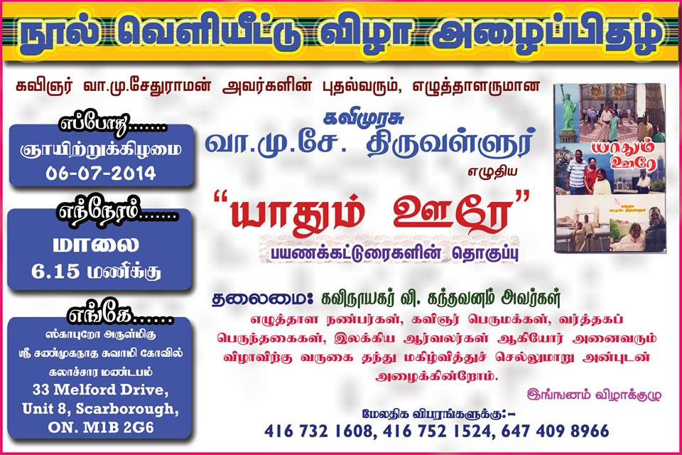 யாதும் ஊரே – வா.மு.சே.திருவள்ளுவர் நூல் வெளியீடு