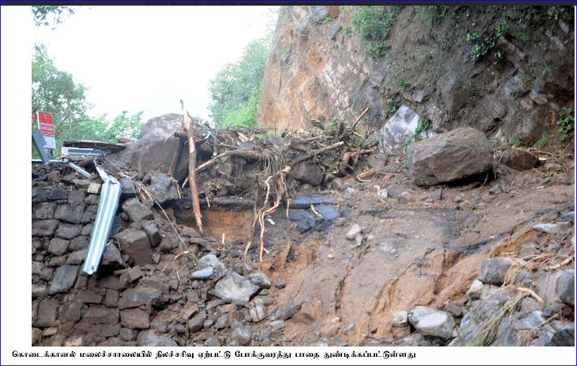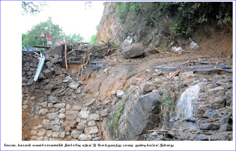 சாலைகளில் மண்சரிவுகள் ஏற்படுகின்றன. பத்துக்கும்மேற்பட்ட இடங்களில்
