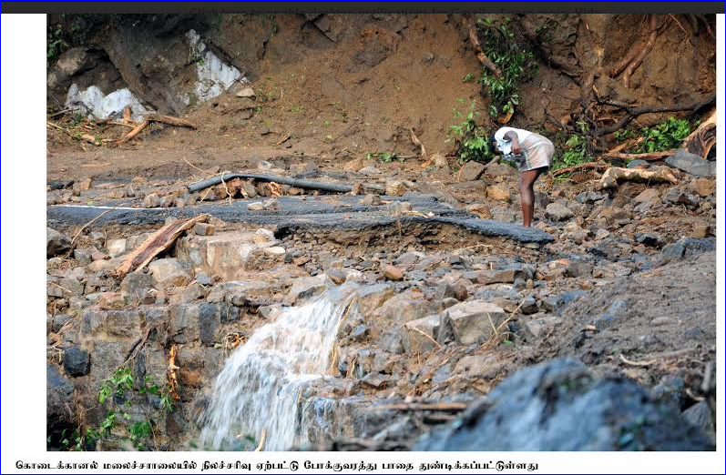 சாலைகளில் மண்சரிவுகள் ஏற்படுகின்றன. பத்துக்கும்மேற்பட்ட இடங்களில்